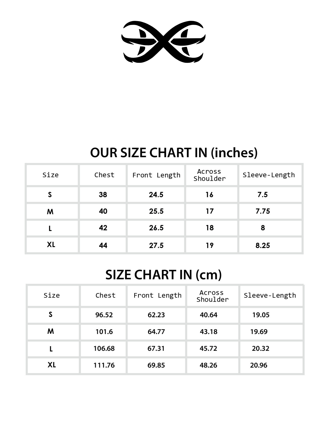 | Size | Chest | Front Length | Shoulder | Sleeve |